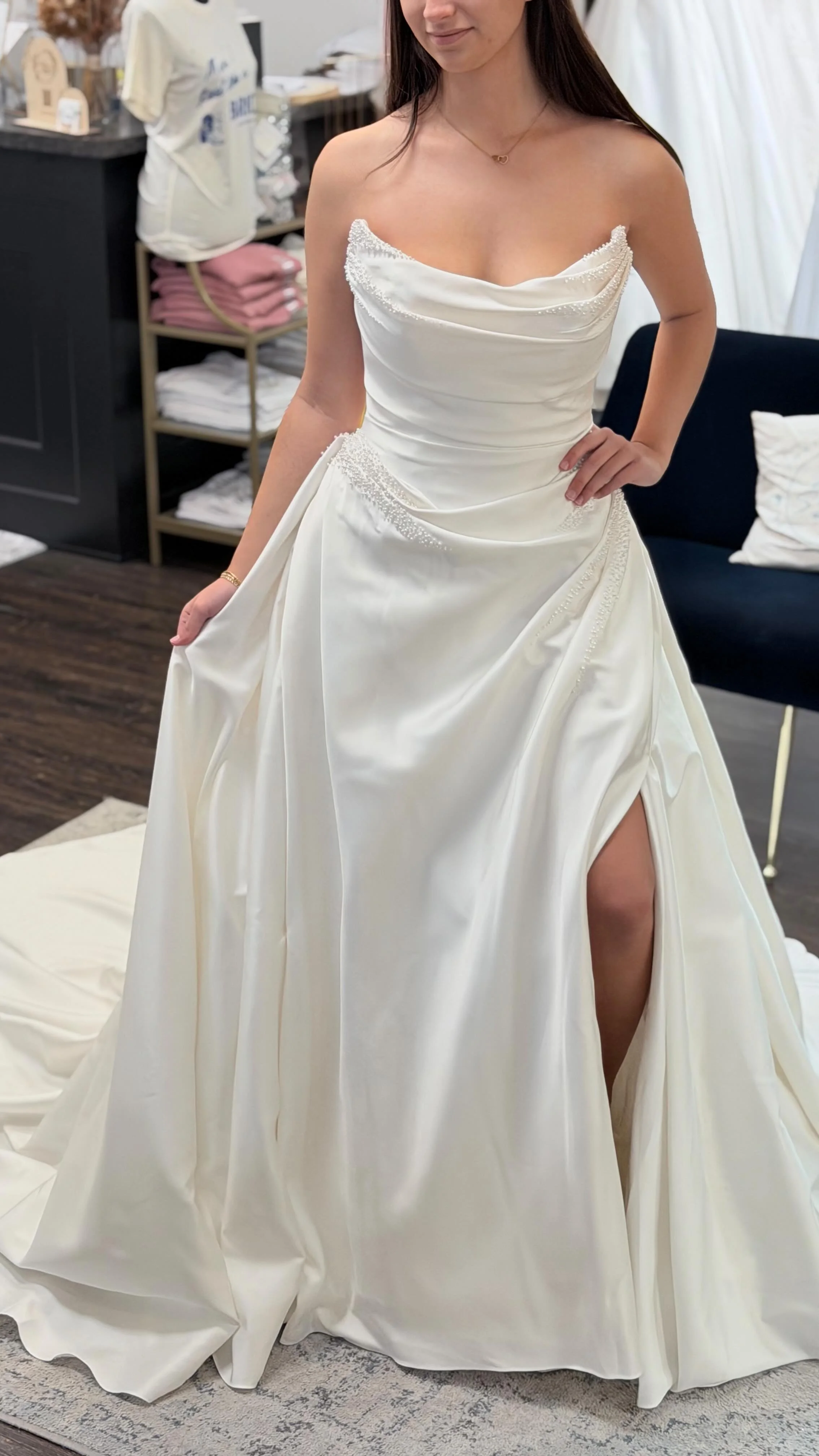 You’re trying on gowns and put one on that gives you “that feeling”. If only it had more sparkle, a lower back or long sleeves. Then it would be the perfect dress! Lucky for you, we can make that happen!