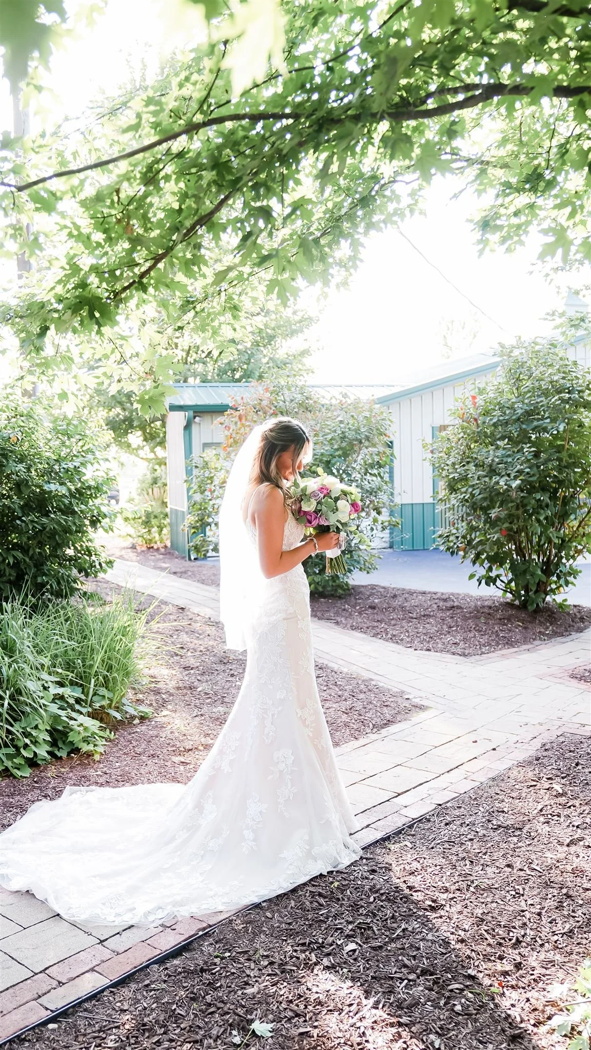 For her summer wedding, Ashlee looked phenomenal in her fitted, lace gown by Stella York!