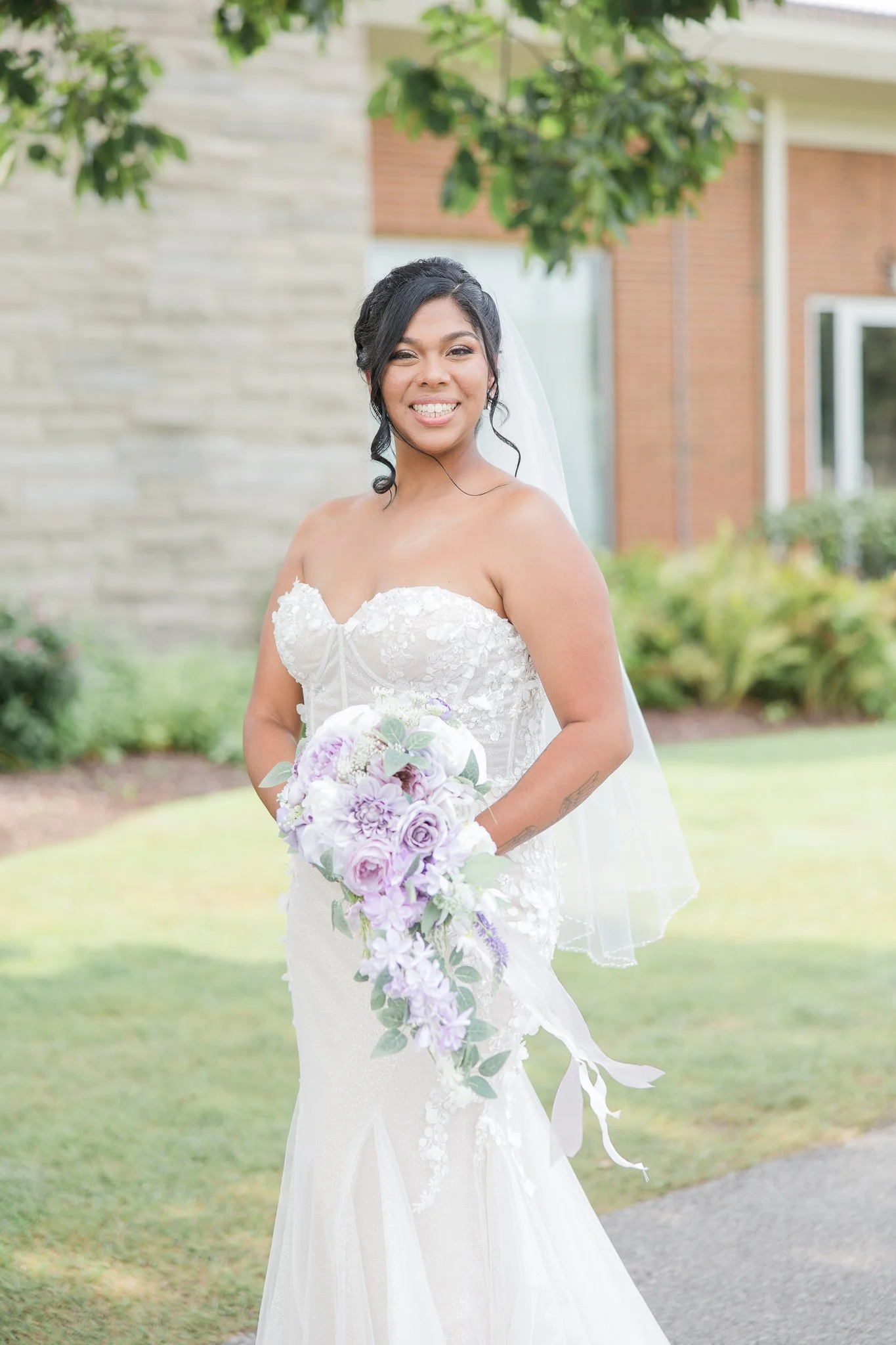 Giselle and her bridesmaids carried beautiful bouquets full of white and purple flowers!