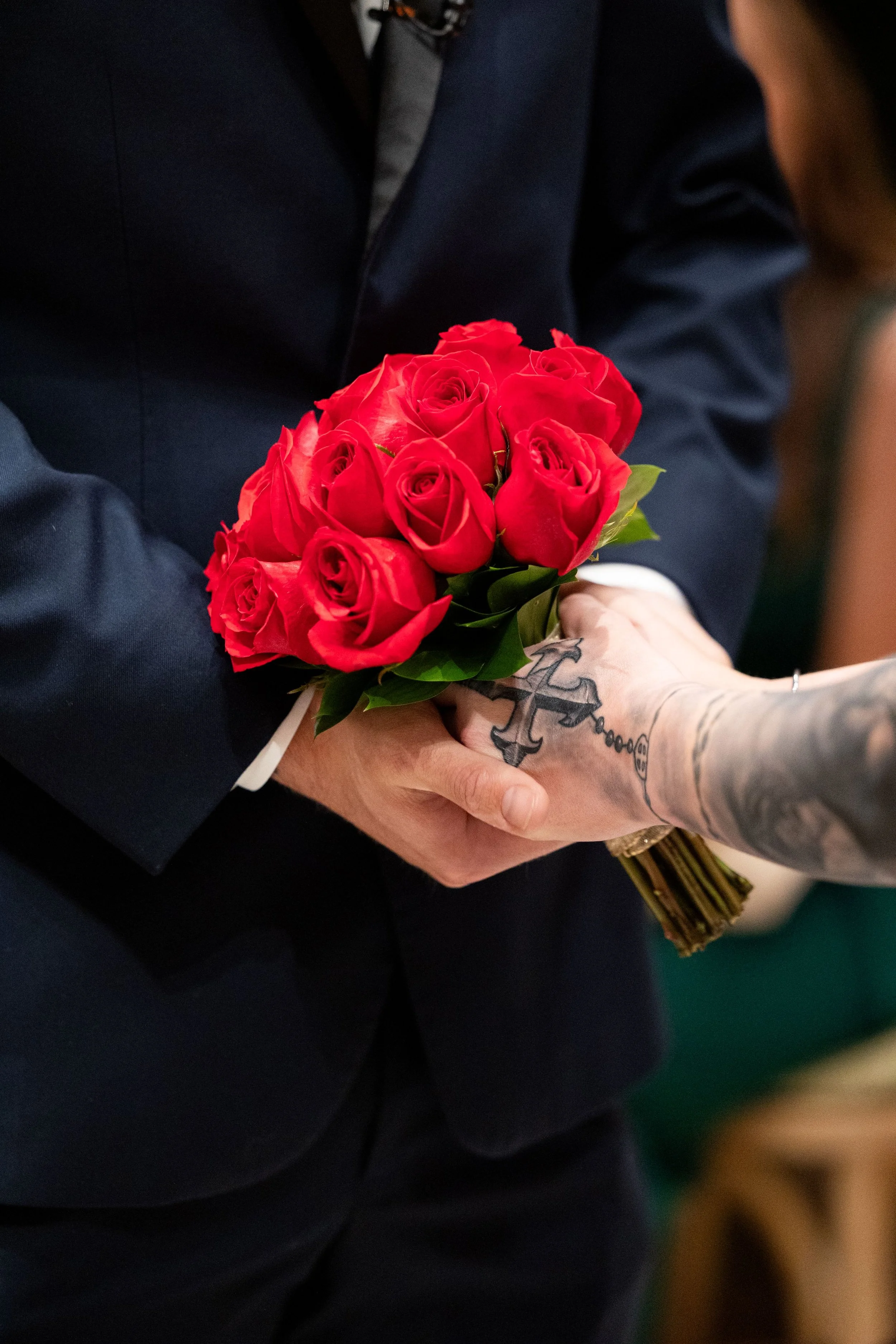 Karrah carried a bouquet of red roses, provided to her by her venue!