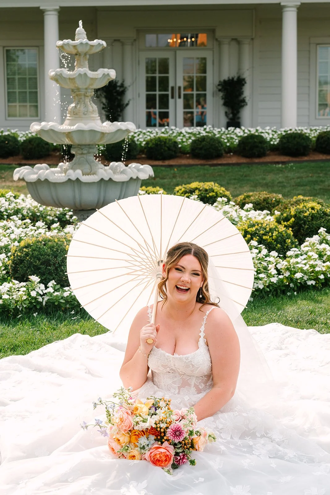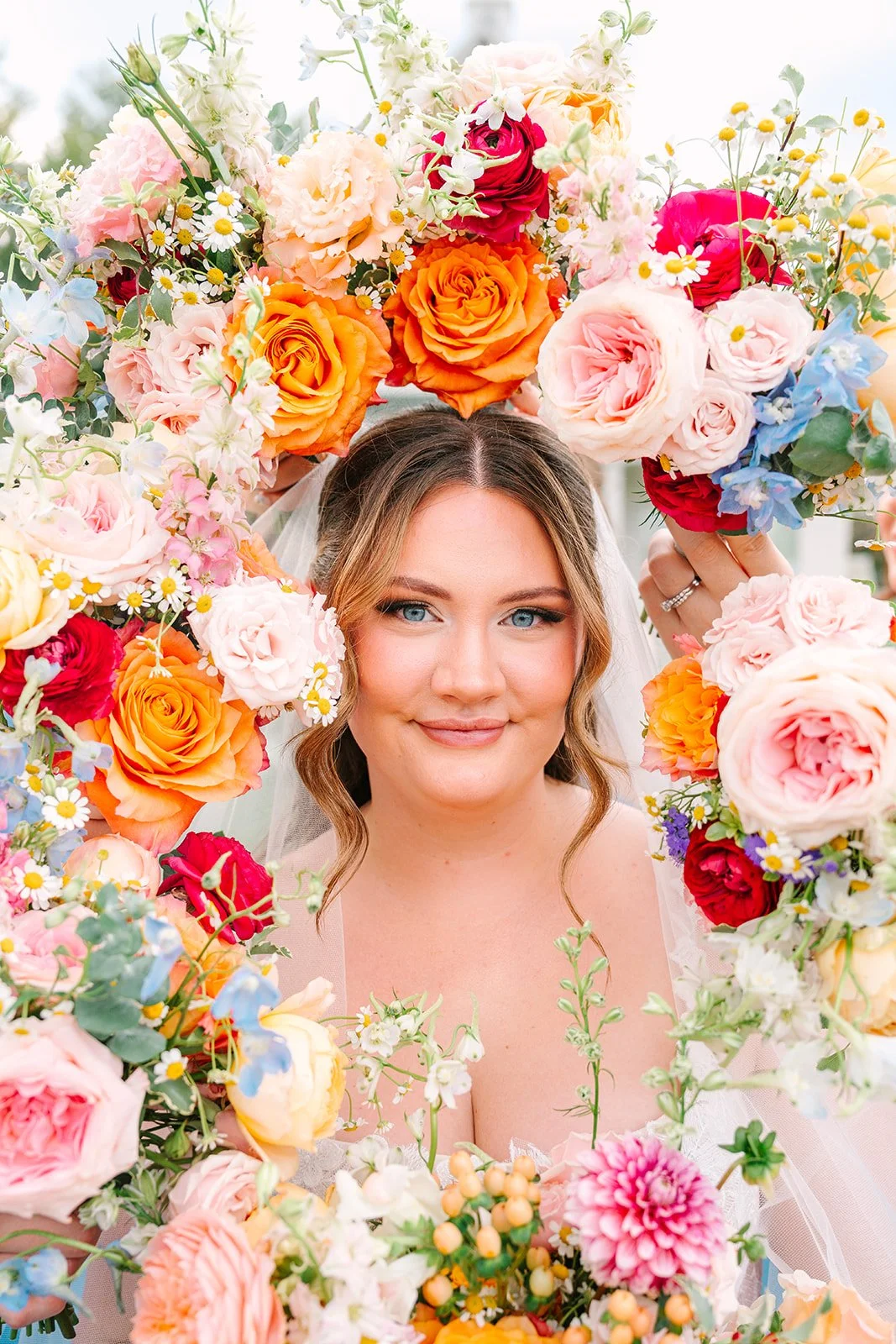 For her colorful wildflower wedding, Madi chose the prettiest Martina Liana ballgown and a two tiered tulle veil by Bel Aire!