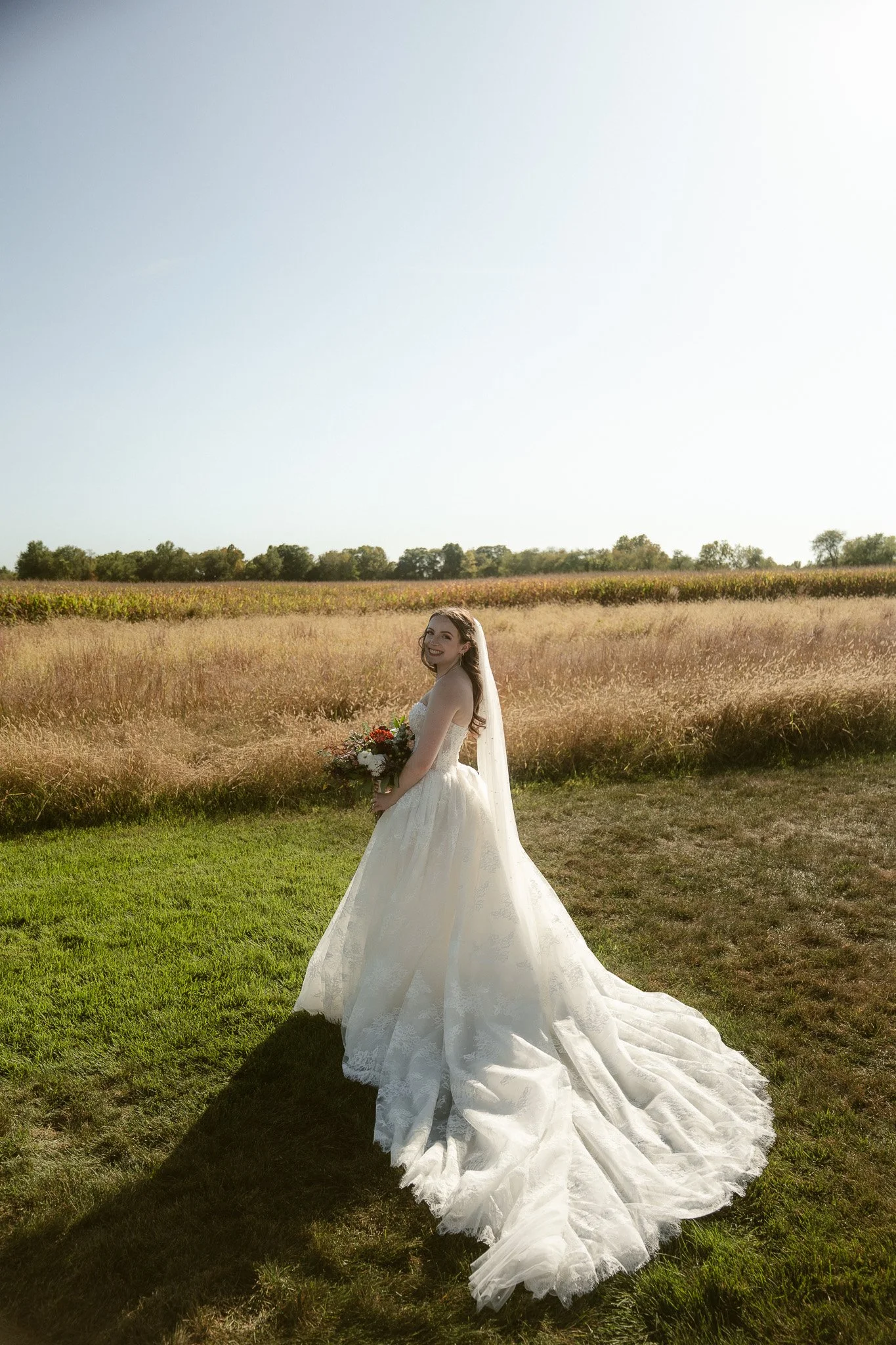 For her fall wedding, Makaela wore one of our favorite Chantilly lace ballgowns EVER by Martina Liana!