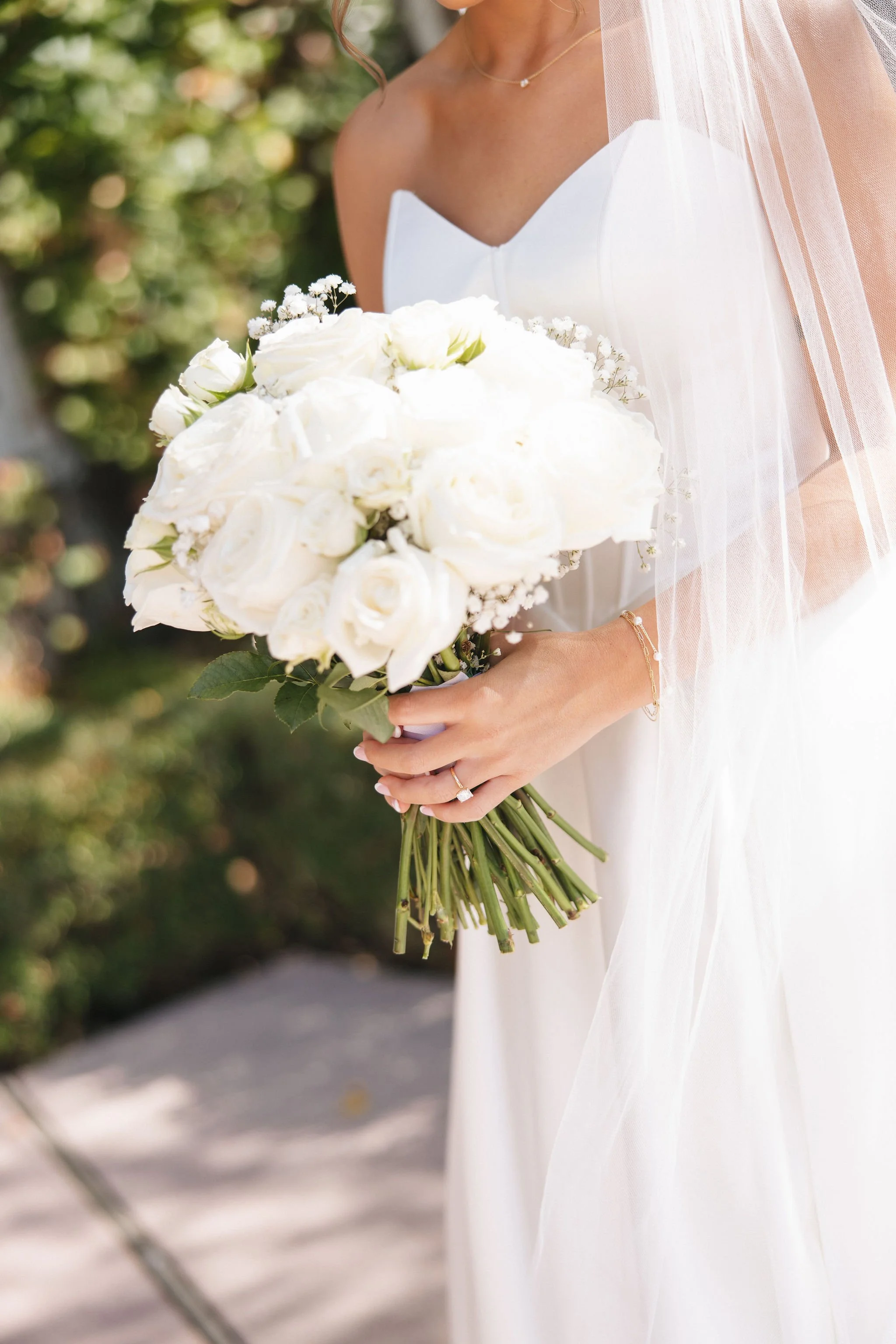 This bouquet is so perfect with Taylor’s clean bride vibes!